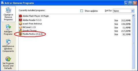 Ви предопреди, че така изтривате „Mozilla Firefox”: кликвате (с левия бутон на